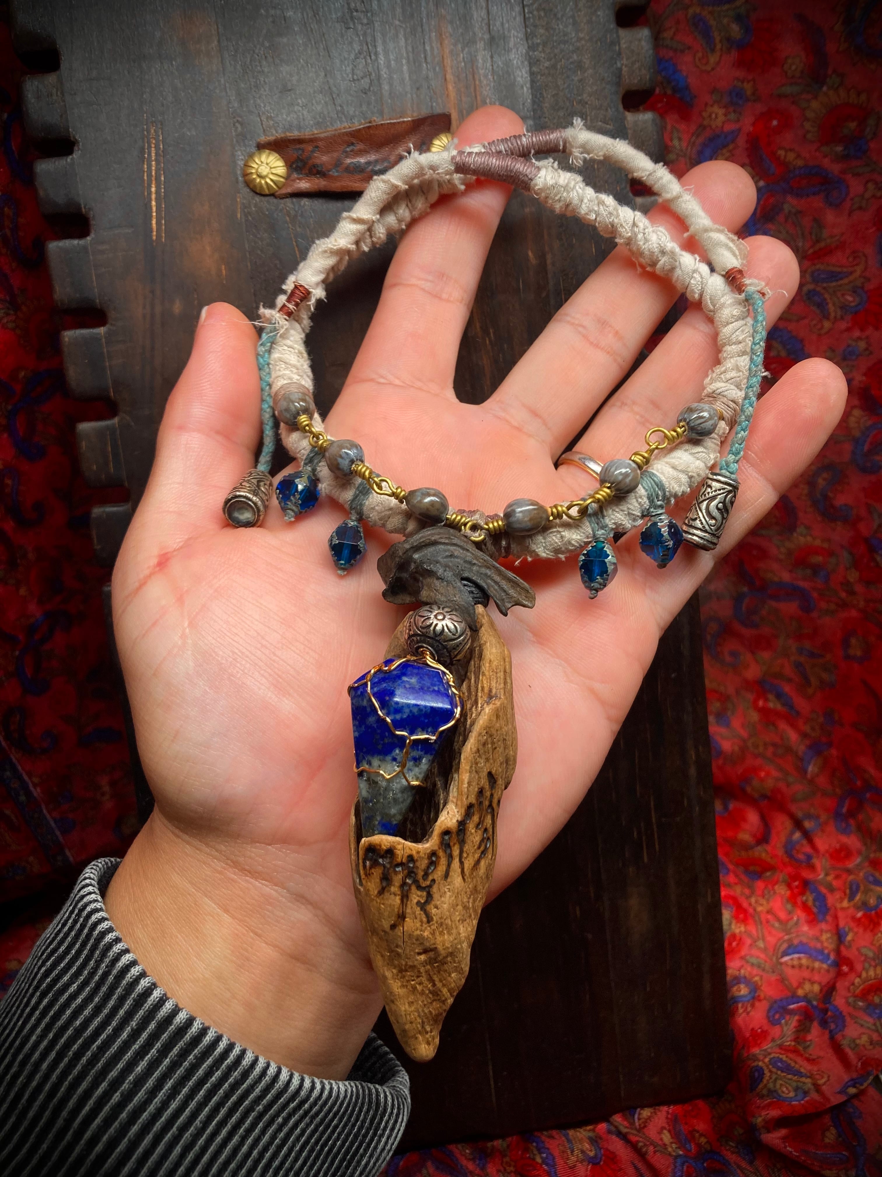 Along its surface, I’ve engraved markings using a pyrography pen—symbols resembling ancient letters, as though carved by claw.