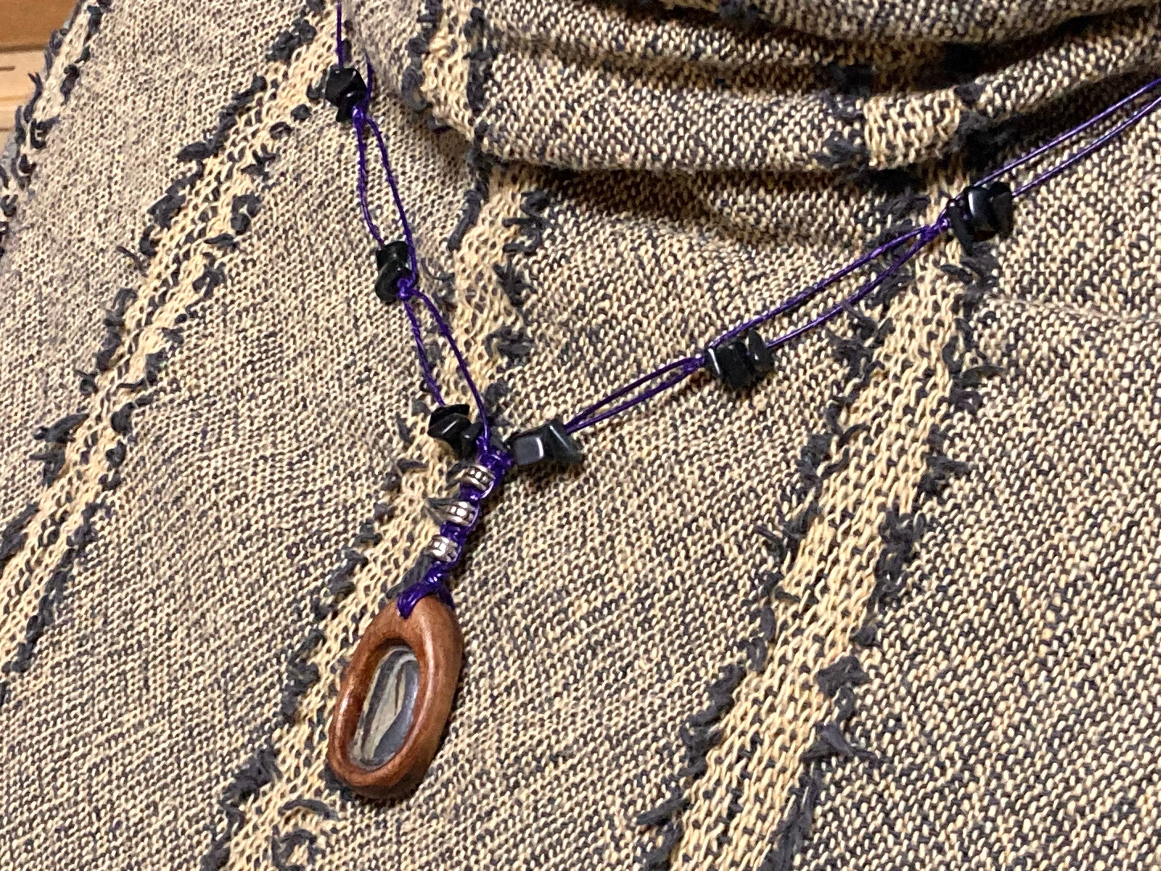 Japanese paper macrame necklace with natural picture stones まるで水墨画 天然ピクチャーストーンの和紙マクラメネックレス